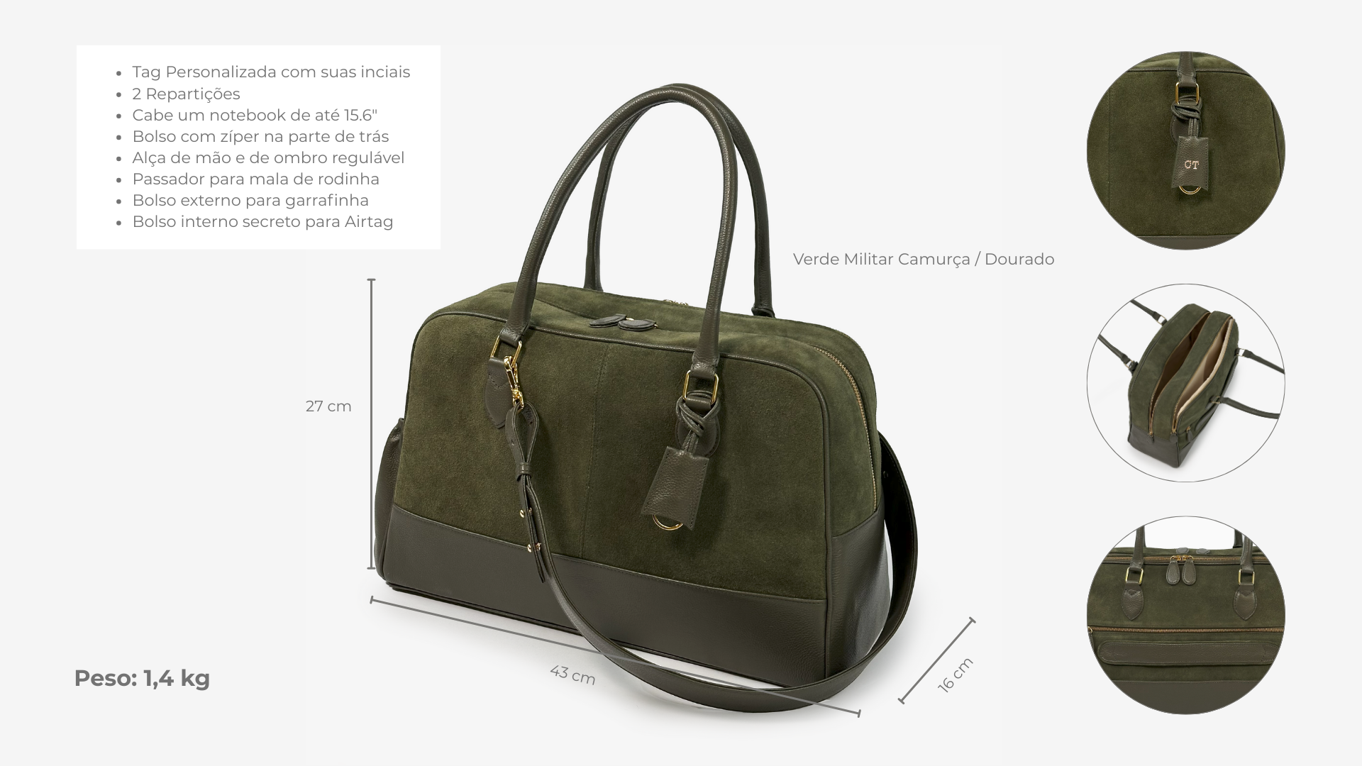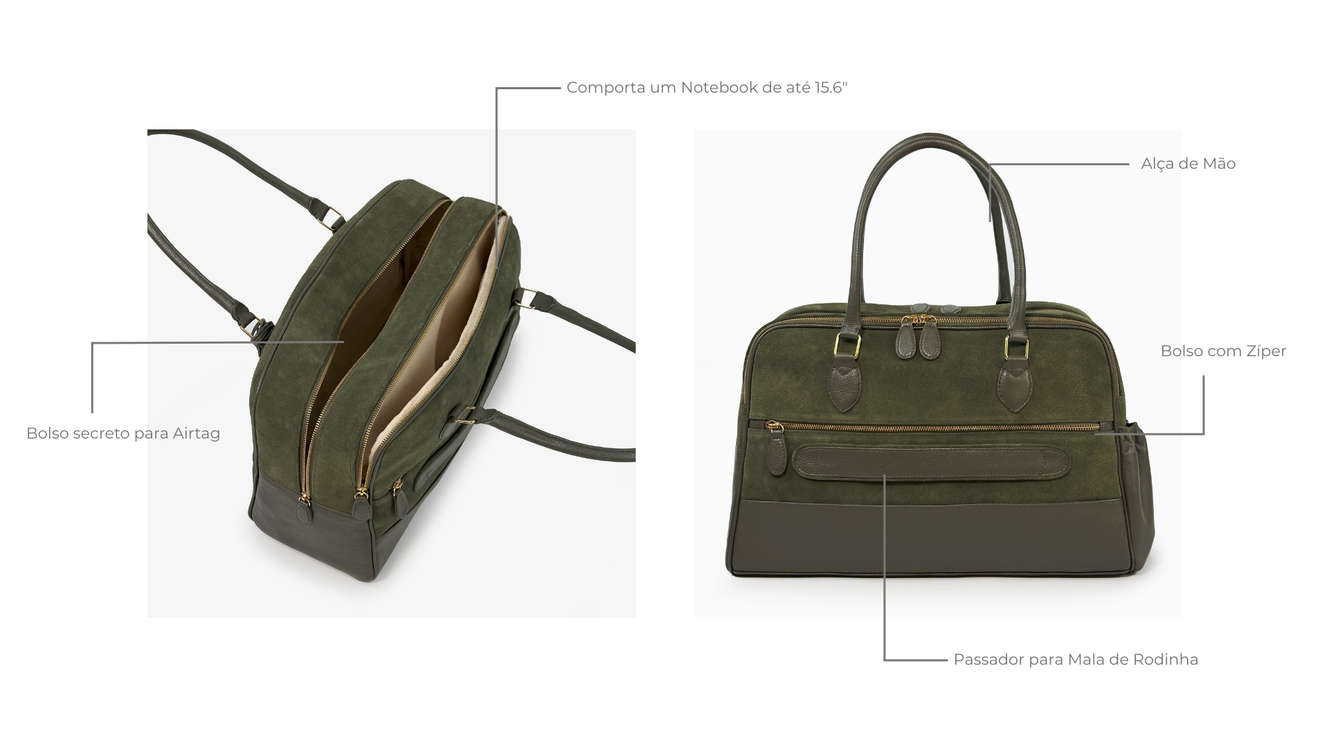 Praticidade para Viagens e Dia a Dia: Com faixa traseira para encaixe seguro na mala de viagem, ela atende todos os requisitos de bagagem pessoal em voos, tornando seus deslocamentos mais práticos e sofisticados.