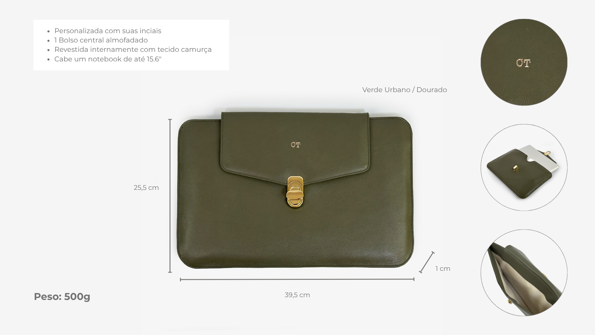• Personalização com iniciais: hot stamping exclusivo que torna cada Case única, como sua trajetória.