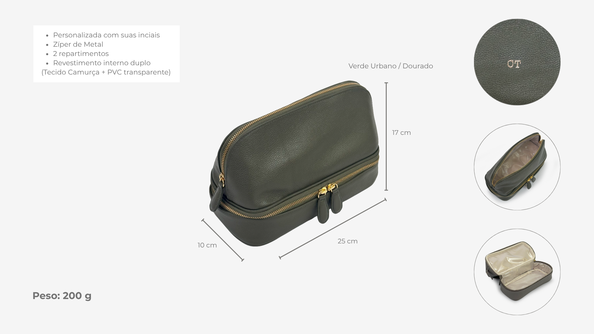 • Forro prático: material interno fácil de limpar, ideal para itens de maquiagem.