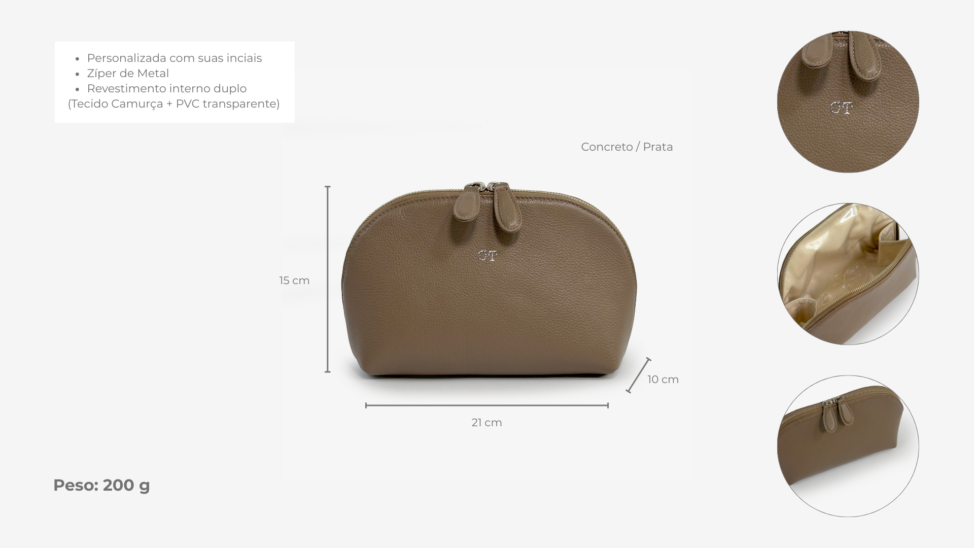 Sua forma compacta permite que ela seja facilmente transportada dentro de bolsas maiores, mochilas ou malas de viagem, sem perder capacidade. A personalização em hot stamping das iniciais transforma a peça em um presente exclusivo e com forte apelo emocional.